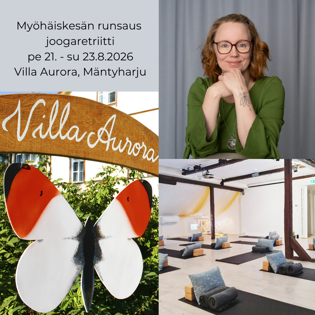 ❤️ Mina ohjaa elokuussa MYÖHÄISKEÄN RUNSAUS JOOGARETRIITIN pe 21.8. - su 23.8. Mäntyharjulla Villa Aurorassa. Voit lukea lisää täältä.